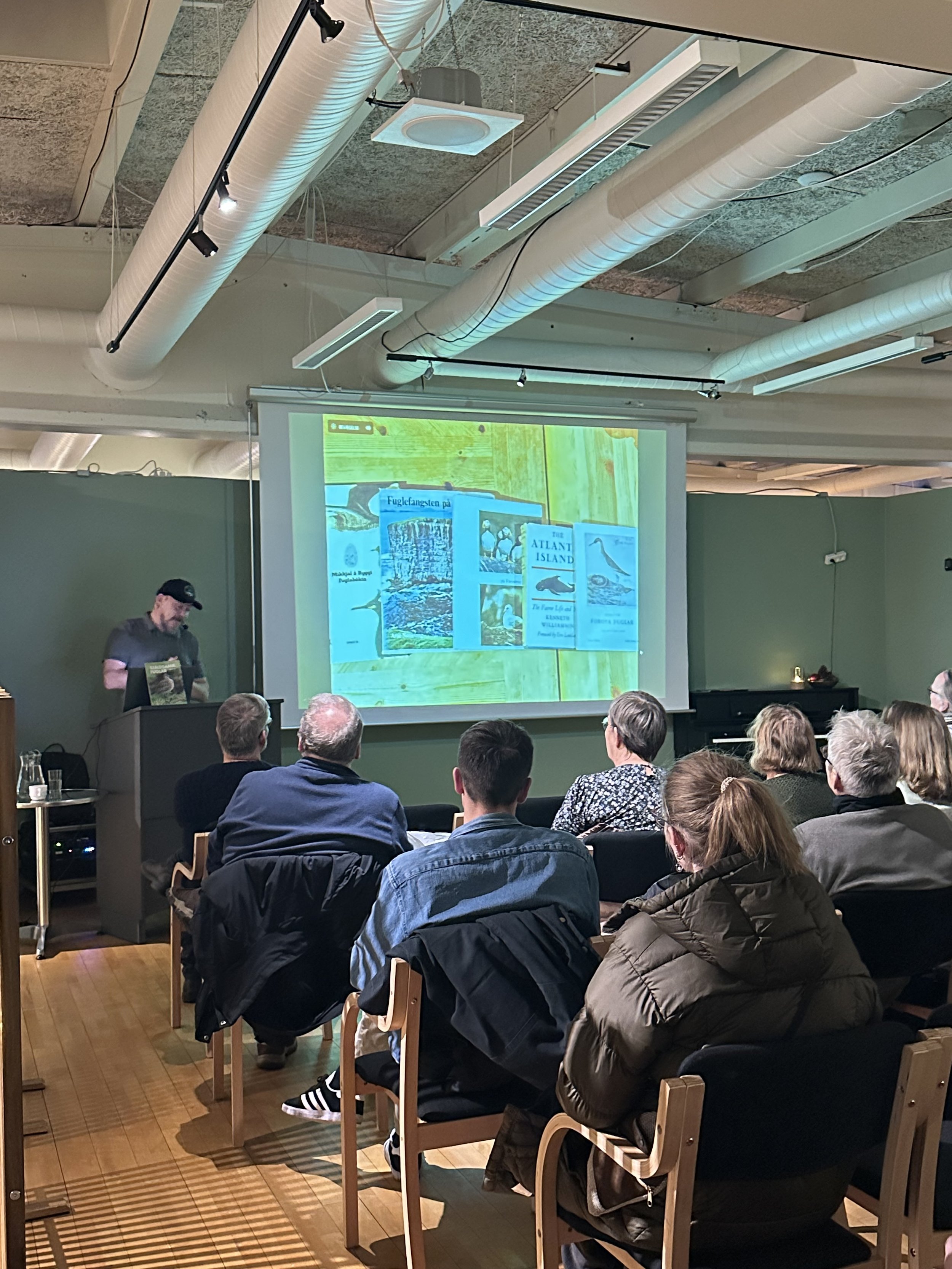 Hóast veðrið var keðiligt, vóru um 30 fólk komin at lurta, tá ið Silas legði fram um arbeiðið aftanfyri hetta verkið, sum fevnir um allar skrásetingar av sjáldsomum fuglum í Føroyum í nevnda tíðarskeiðinum.