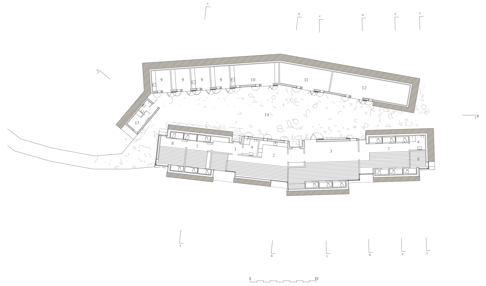 De genopbyggede og tilbageførte historiske bygninger er i sig selv en del af oplevelserne og fortællingen, men bygningerne skal også være rammen om udstillinger, beboelse, foredragssal og bådeværksted. Et visitorcenter skal bygges lidt væk fra den oprindelige bebyggelse. Centret skal anvendes til aktiviteter som lejrskoler, kurser, receptioner, men også til laboratorier, værksted og depoter.