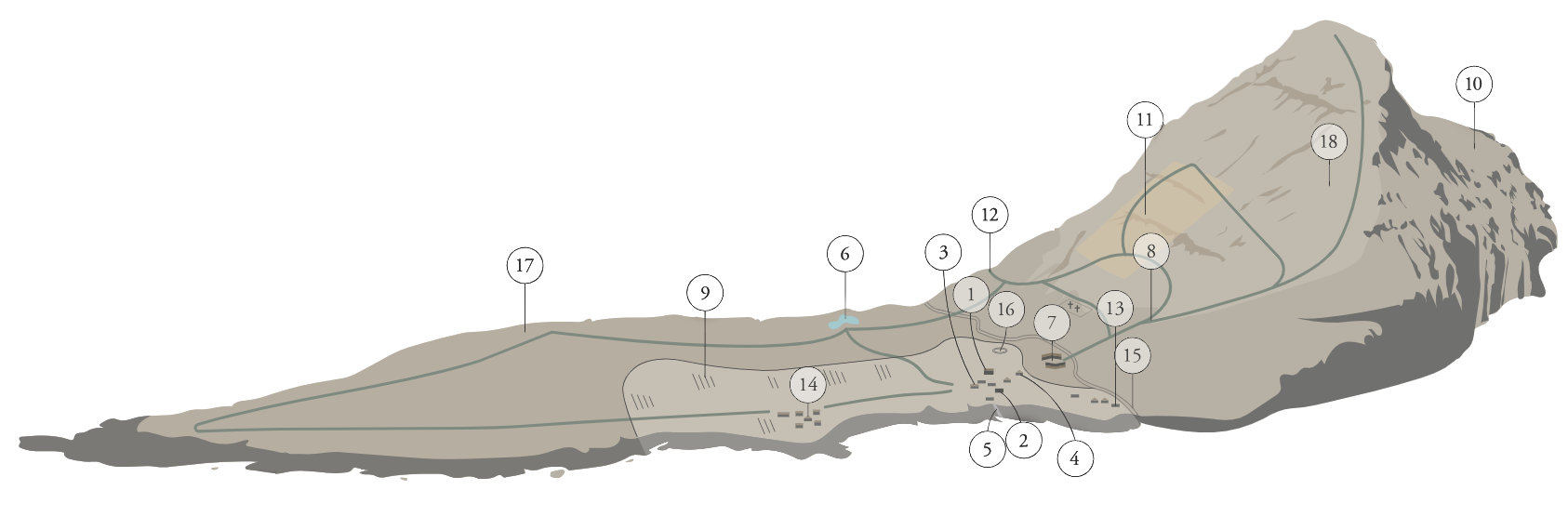 Indledningsvis deles øen i et naturområde og et kulturområde. Størstedelen af øen skal danne grundlag for videnskabelige studier af biodiversitet og økosystemet, samt museets arbejde med at formidle Færøernes natur. Kulturlandskabet – hovedsagligt indmarken, tilstødende udmark og “býlingar” bevares og indgår i fortællingen om landbrugssamfundet i det 19. århundrede og det moderne samfund, der på Færøerne slår igennem i første halvdel af det 20. århundrede.